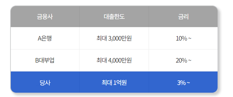 대출한도100만원 ~ 10억원까지(마이너스 : 3,000만원까지)